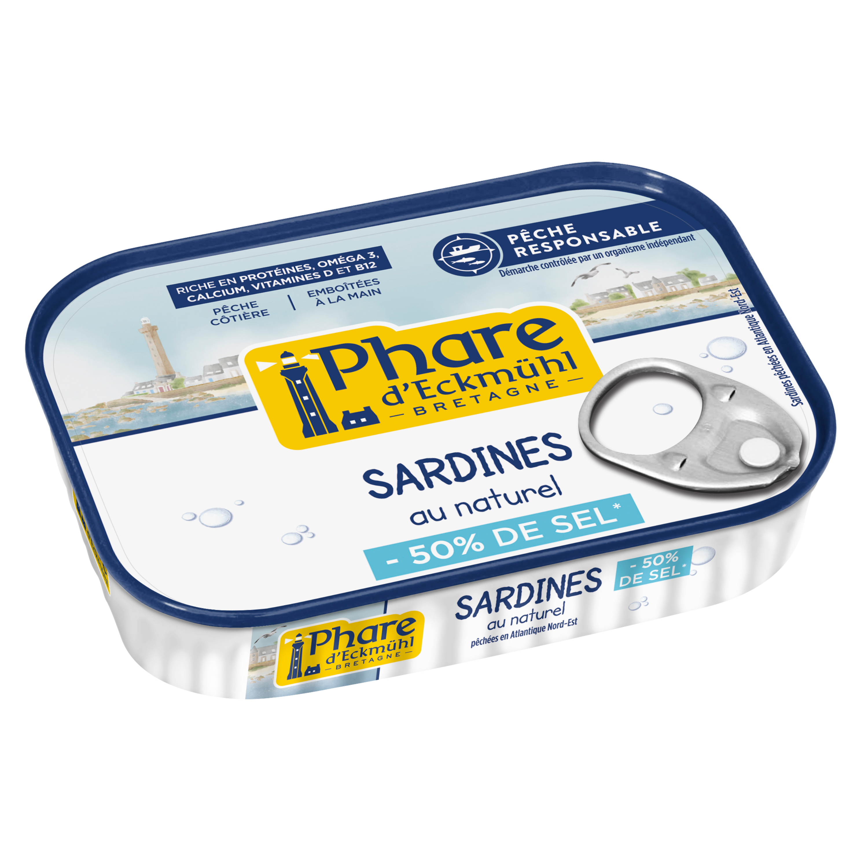 Le thon blanc (ou thon germon), est une espèce noble de l’Atlantique, riche en protéines (qui contribuent au maintien de la masse musculaire), et en acides gras oméga 3 (qui contribuent au fonctionnement normal du cœur, du cerveau et de la vision1), dans le cadre d’une alimentation variée équilibrée et d’un mode de vie sain. Chez Phare d’Eckmühl, nous sélectionnons rigoureusement des thons pêchés entre juillet et octobre par nos partenaires engagés, en pleine saison, afin de garantir une qualité nutritionnelle et gustative inégalée.