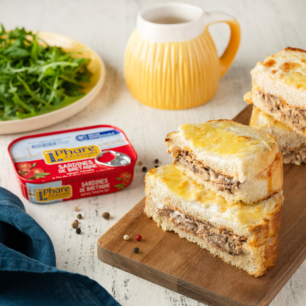 Préchauffez le four à 220°C. Etalez une petite couche de béchamel sur 4 tranches de pain (environ un tiers). Déposez 2-3 sardines à la tomate tête-bêche. Etalez un peu de béchamel sur les tranches de pains restantes et fermez les croques. Etalez une couche de béchamel sur le dessus des croques.